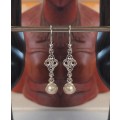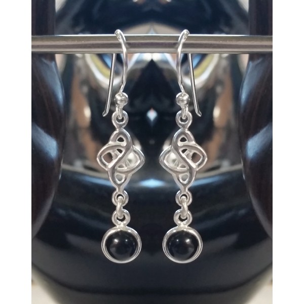 Four point Celtic knot silver charm with marquise cabochon gemstone. Perfect for anytime wear. These lovely drops are available in amethyst, rainbow moonstone and black onyx. All my hooks are 925 sterling silver . Hallmarked