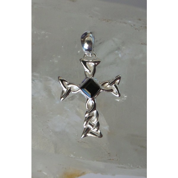 Celtic cross sterling silver pendant with square facet gemstone