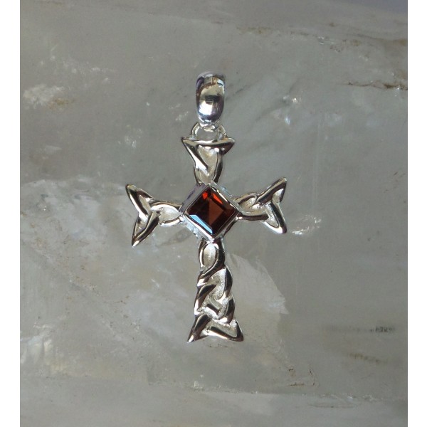 Celtic cross sterling silver pendant with square facet gemstone. Available in amethyst, garnet and peridot